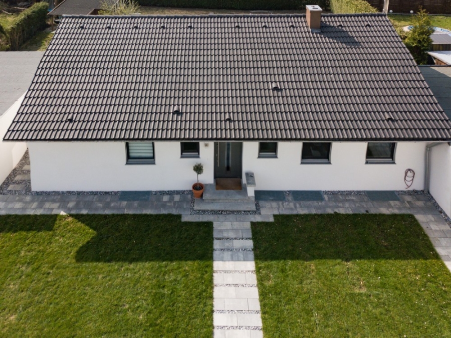 Sie suchen ein großzügiges und besonderes zu Hause? Sie wollen mitten im Grünen, aber doch hervorragend angebunden wohnen? Dann wird Sie dieser Bungalow auf Anhieb  begeistern. Dieser luxuriöse Bungalow wurde 1981 auf einem gut 980 m² großen Grundstück erbaut und wurde 2018 aufwendig auf das Detail kernsaniert. Das puristische Design ist wirkungsvoll im gesamten Haus in grau, Anthrazit und weiß gehalten.