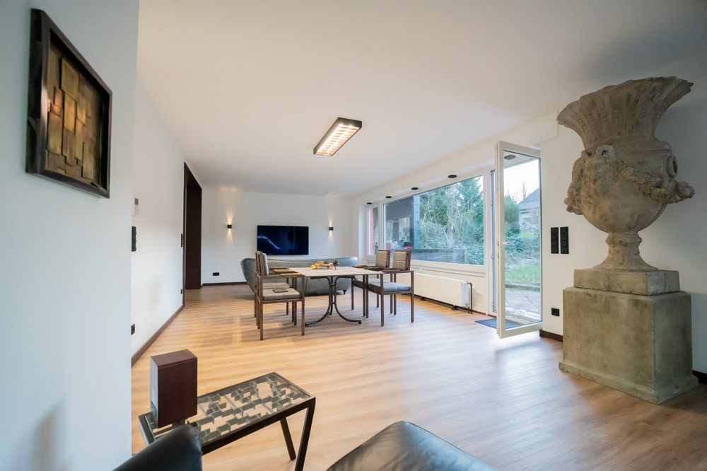 In 2022 wurde dieses Einfamilienhaus, mit Nutzung auch als Zweifamilienhaus, kernsaniert und besticht durch eine exklusive Innenausstattung. Somit entstand ein weitläufiges, familienfreundliches Domizil, das sich individuellen Bedürfnissen anpasst und zugleich eine repräsentative Atmosphäre vermittelt.