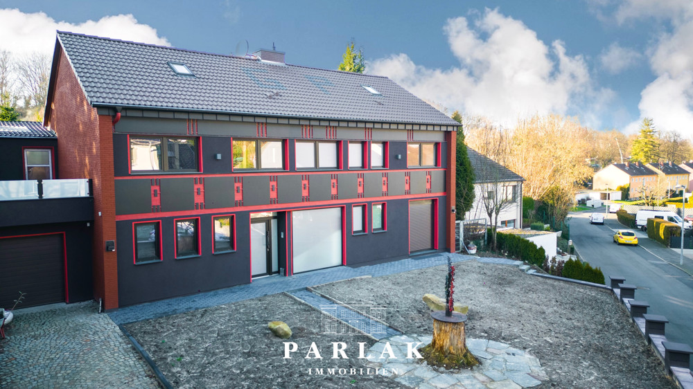 - Einzigartige Fassade in schwarz- roter Optik und Milchglasfenster, sowie Beleuchtung und separater Frühstücksterrasse