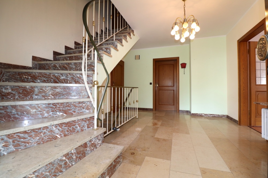 Sie betreten den mit Marmorfliesen ausgelegten Eingangsbereich und werden von der Helligkeit begeistert sein. Von dort aus haben Sie Zugang zu allen Räumen im großzügigen Erdgeschoss sowie einen eleganten Aufgang in das Obergeschoss, welches über weiteren Wohnraum verfügt. Das lichtdurchflutete Wohnzimmer mit angrenzender Küche sowie geräumigen Essbereich verfügt über zwei separate Balkone mit Süd-Ausrichtung.