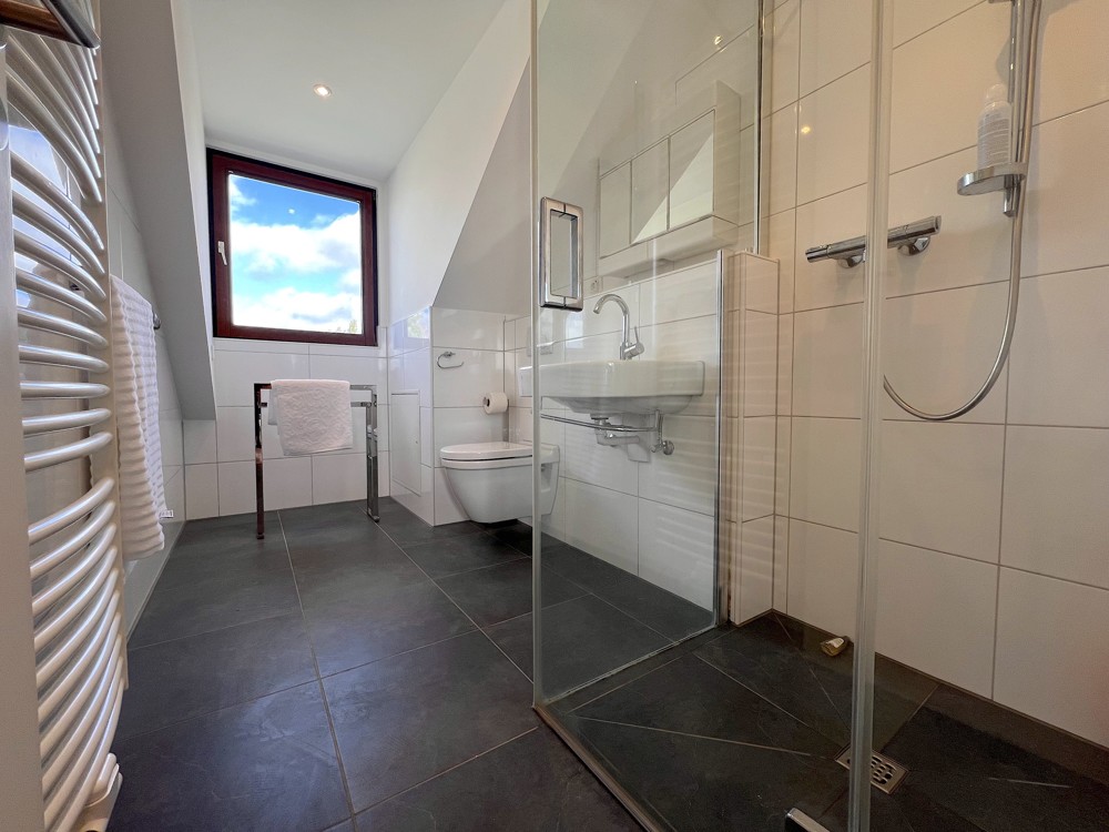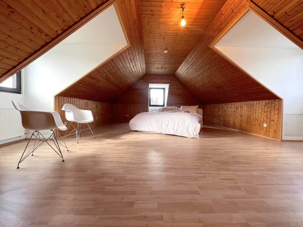 Im charmanten Obergeschoss des Domizils befindet sich der großzügige Master-Bedroom mit stilvollen Dachgauben, welche im Zusammenspiel mit den Holzdecken für harmonische Lichtverhältnisse sorgen und ein behagliches Wohngefühl schaffen.