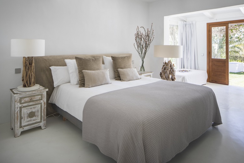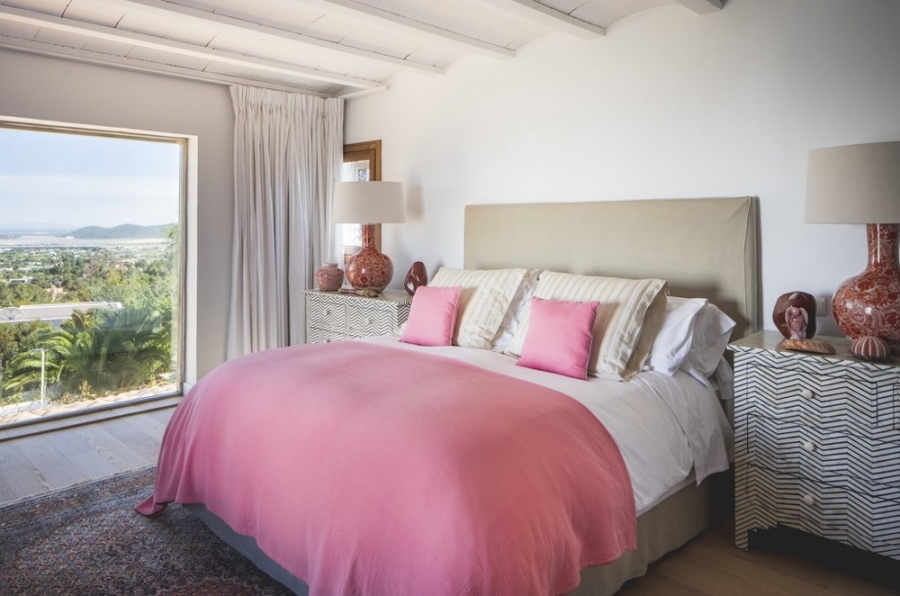 The spectacular villa is located on a hill, only 4 km away from Ibiza town and 5 minutes from the airport. The property is orientated south and has fantastic panoramic sea views on Playa den Bossa, Cap des Falco, Salinas and even to Formentera. The property is 8000 m² and the villa has 450 m² plus a guesthouse 120 m². There are 4 double bedrooms, 4 with bathroom en suite in the main house.
