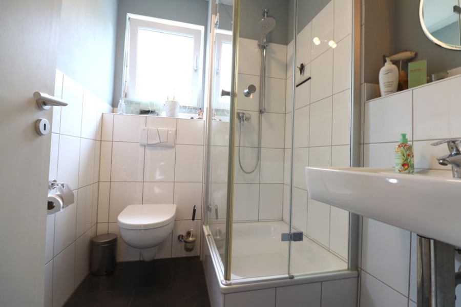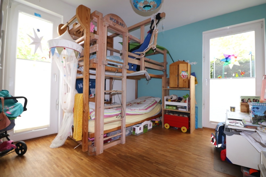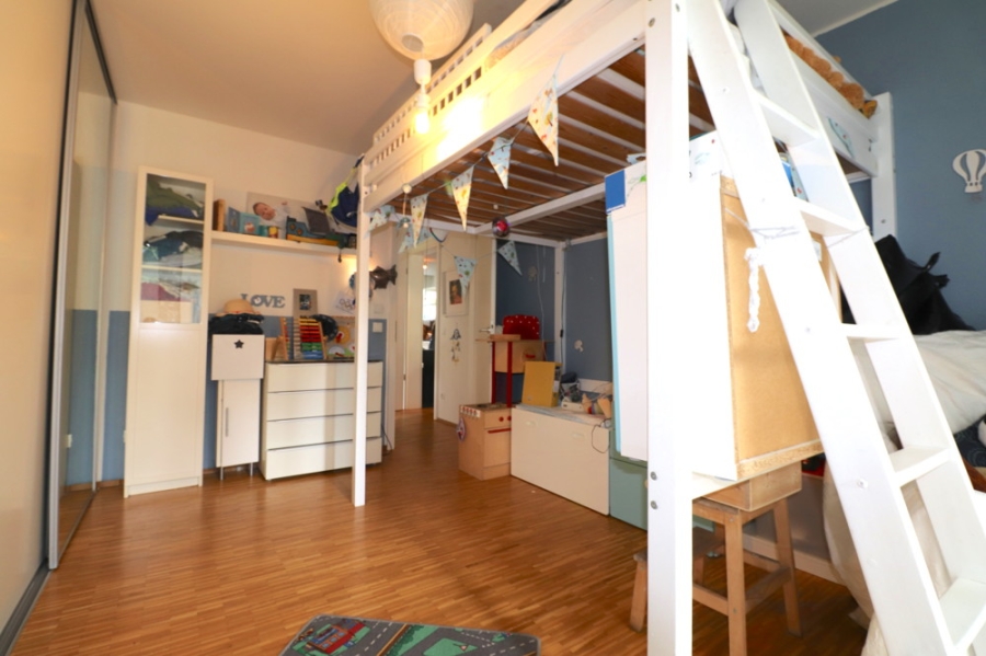 Neben den zwei modernen Badezimmern mit Wanne, Dusche und Tageslicht sind die separaten Gärten ein besonderer Reiz dieser Wohnung. Hier lässt sich die Nachmittags- und Abendsonne aufgrund der Ausrichtung und ruhigen Wohnanlage genießen. Ein großzügiges Schlafzimmer und ein Kinder-/Arbeitszimmer mit Zugang in den Garten runden das Angebot ab.