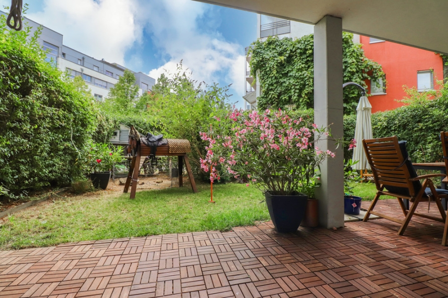 Moderne Erdgeschosswohnung mit zwei Gärten und TG-Stellplatz in Bilk