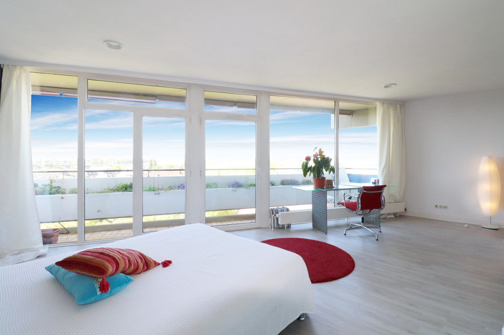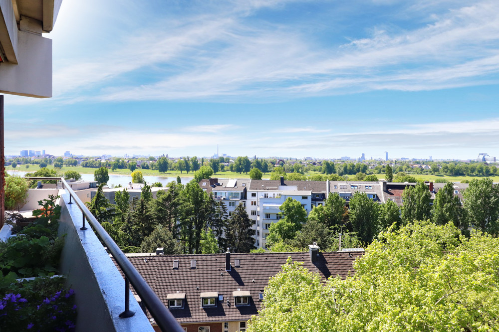 - Balkon mit Blick auf die Düsseldorfer Skyline