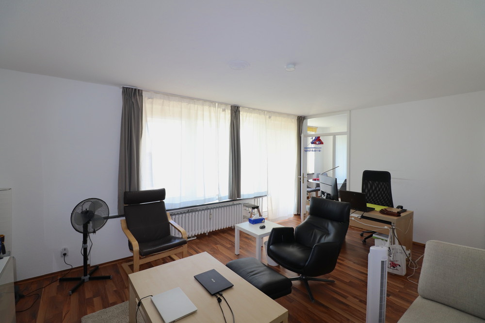 Die moderne 2-Zimmer-Wohnung mit ca. 66 m² Wfl. befindet sich im fünften Obergeschoss eines gepflegten Mehrfamilienhauses in Düsseldorf - Niederkassel. Zur Wohnung gehören neben einem innenliegenden Wannenbad mit WC und Waschbecken ein großzügiges und lichtduchflutetes Wohn-/ Esszimmer mit separater Wohnküche (inkl. Einbauküche mit Elektrogeräten) sowie ein Schlafzimmer und ein Abstellraum. Die Wände sind tapeziert und gestrichen, die Fußböden mit Laminat und Fliesen (Sanitärbereich) ausgestattet. Gemeinschaftlich genutzt werden der Wasch- sowie der Fahrradraum. Ein großzügiger West-Balkon mit Weitblick lädt zum Entspannen ein und rundet das attraktive Gesamtangebot ab.