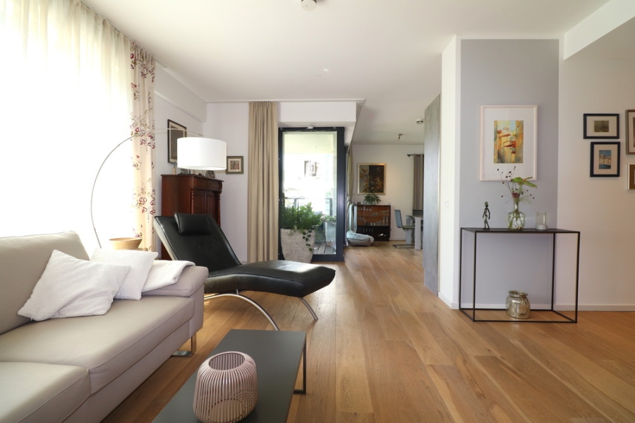 Mit einer hochwertigen Ausstattung und luxuriösen Einbauten auf großzügiger Fläche passt sich die Immobilie an die individuellen Bedürfnisse an und repräsentiert zugleich eine heimliche Atmosphäre.