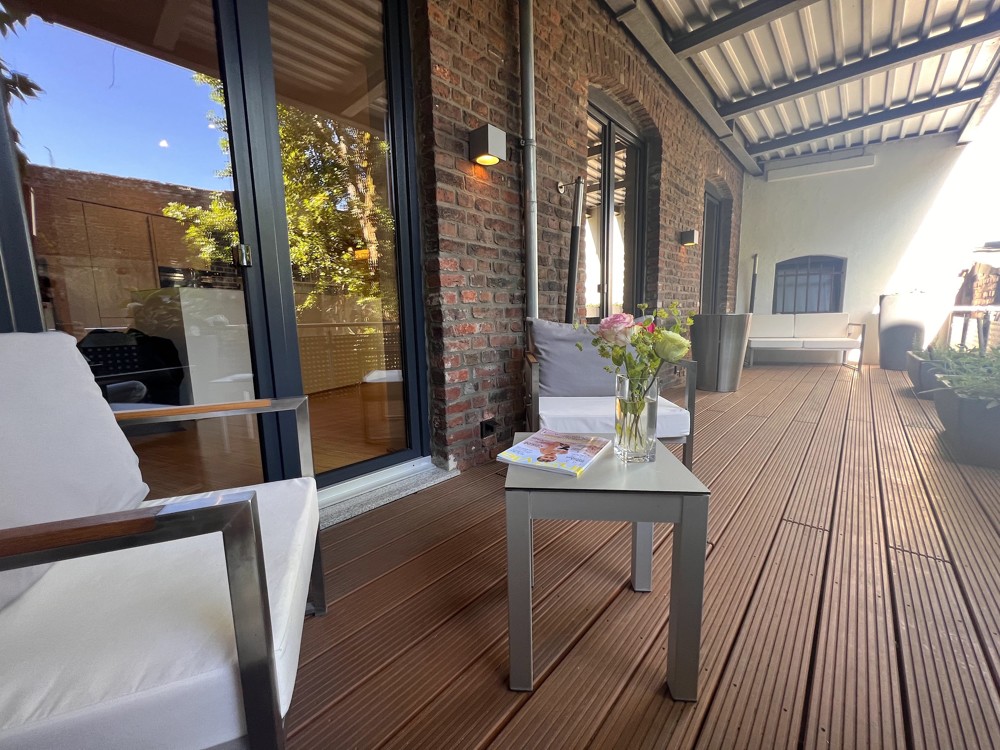 Ein weiteres Highlight dieser Immobilie ist die großzügige Terrasse, auf der Sie die Sonne den ganzen Tag über genießen können. Die raumhohen Fenster ermöglichen einen atemberaubenden Blick nach draußen und lassen viel Tageslicht in die Räume.