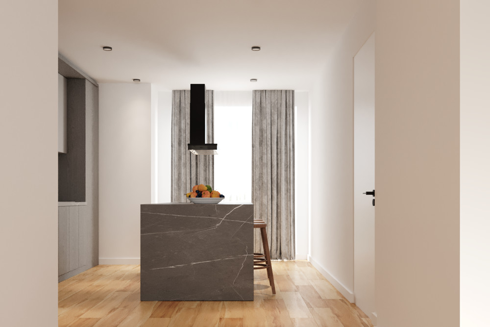 Die elegante Steinfassade mit Erkerbalkonen und der repräsentativen Eingangstür umhüllt die vier neu entstandenen Wohnungen zwischen ca. 82,00 und ca. 91,00 m² sowie eine exklusive Penthouse-Wohnung mit ca. 153,00 m².