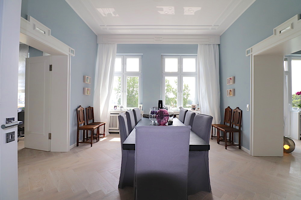 Sie mögen die Kombination zwischen Jugendstil und Moderne? Dann sind Sie bei dieser Immobilie genau richtig. Dieses liebevoll kernsanierte Altbauwohnung mit ca. 220 m² Wohnfläche befindet sich im zweiten Obergeschoss eines Jugendstilhauses aus dem Jahr 1906 an der Rheinfront von Düsseldorf-Oberkassel. Die bezaubernde Altbauwohnung bietet viel Platz für die große Familie. Sie besticht vor allem durch ihren großzügigen und hellen Wohn- und Essbereich. Das in der gesamten Wohnung verlegte massive Parkett versprüht eine warme Atmosphäre. Das hochwertige Badezimmer mit großer Badewanne und großer Dusche unterstreichen die hochwertige Ausstattung. Da nach der aufwendigen und hochwertigen Sanierung und fast alles neu erbaut wurde, ist es wie ein Erstbezug in einem wunderschönen klassischen Neubau! Abgerundet wird die Immobilie durch den traumhaftem Ausblick auf den Rhein. Es gäbe noch so viel zu dieser traumhaften Altbauwohnung zu sagen - lassen Sie sich bei einer Besichtigung von den vielen Vorzügen überzeugen. Wir freuen uns über Ihren Anruf und stehen dann gern für eine Besichtigung zur Verfügung.